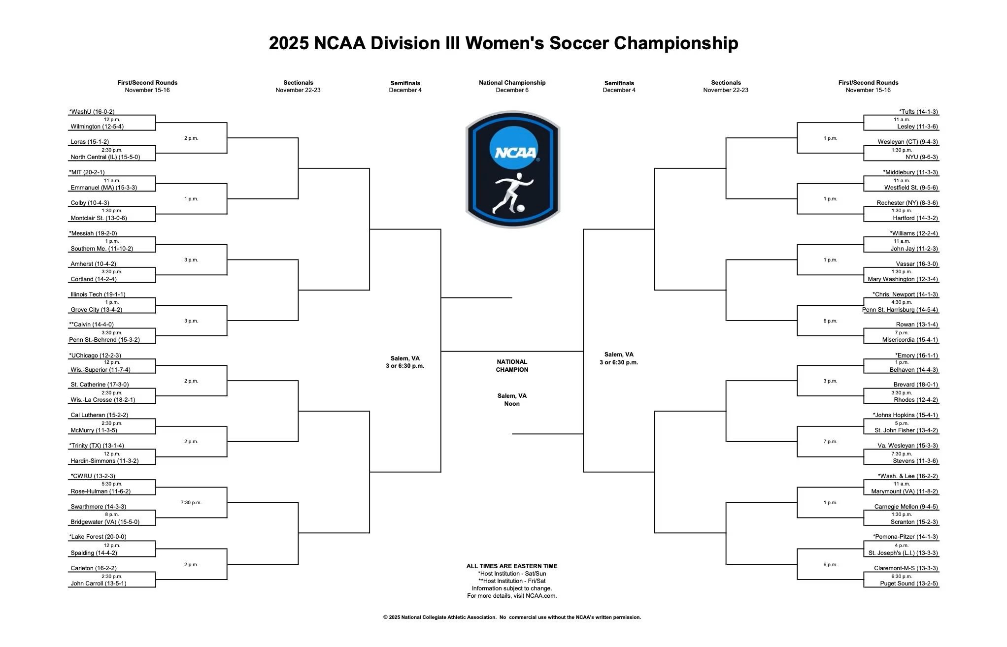 With the CNE title now in hand and momentum carrying them forward, the Hawks set their sights on their first-round matchup in the NCAA Tournament against the University of Rochester. That game will be played at Middlebury College (Vermont) on Saturday, Nov. 15, at 1:30 p.m. If the Hawks win, they would return to action the following day for a Sunday, Nov. 16, game (1 p.m.) against the winner of Saturday's contest between Middlebury College and Westfield State.