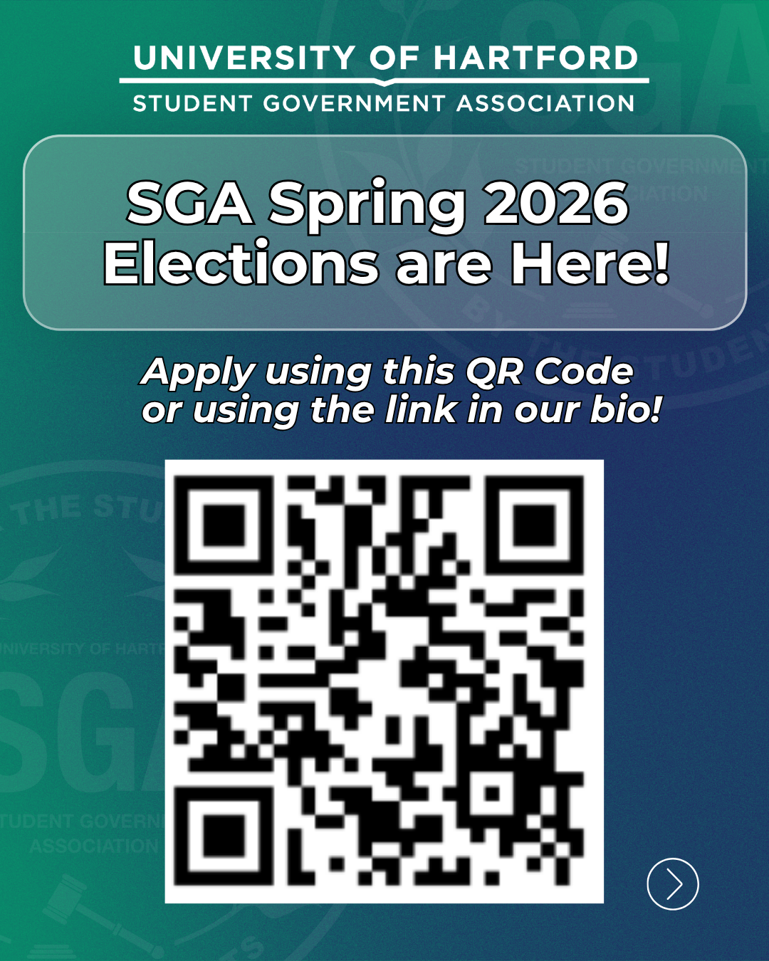 Step 1: Scan the QR code or visit the link in our Instagram bio. Complete the SGA Elections Packet