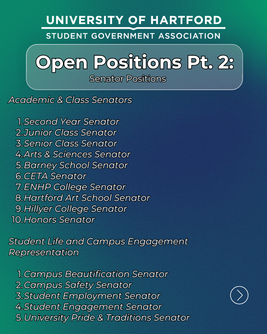 Our Constitution charges us with real responsibility including advocacy, governance, oversight, budget management, and building a campus where every student feels represented. That work only matters when students step forward to lead it.